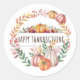 Happy Thanksgiving leafy pumpkin wreath Classic Round Sticker