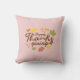 Pretty and modern Thanksgiving Pillow featuring subtle autumn fall colors, leaves against a soft pink background.