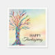 These Happy Thanksgiving paper napkins are decorated with a colorful mosaic family tree on a watercolor background.