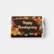 Beautiful dark brown Happy Thanksgiving candy favors for a company to send to clients their gratitude during the holiday season. Customize with your business name inside the watercolor fall foliage of orange leaves.