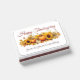 This old fashioned company holiday matchbook party favors features a vintage drawing of orange pumpkins, fall leaves, and cute autumn sunflowers. Nostalgic Happy Thanksgiving matchboxes with brown script of your business name and personalized business name for clients and friends.