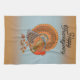 Happy Thanksgiving Turkey fanned Tail Orange Blue Kitchen Towel