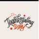 A digital art piece with the words "Happy Thanksgiving Day" in a decorative, calligraphic style. The word "Thanksgiving" is prominently displayed in a bold, black script with elegant swirls and flourishes, while "Day" is written in a complementary red script, also with a calligraphic touch. Above "Thanksgiving," the word "Happy" is written in a smaller, semi-circular arrangement with tiny red accents. The design includes small red maple leaves and star-like shapes scattered around the text, adding to the festive theme. The background is a soft, off-white color with a subtle, grainy texture, giving the piece a vintage or rustic feel. The overall style is clean and modern, with a focus on typography and a limited color palette.