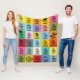 A throw featuring almost every variation of the HAPPY robot from the first decade of HAPPY.
