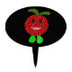This awesome cake decoration features a cute cartoon of a smiling tomato with black eyes, pink mouth and cute little green feet.