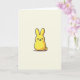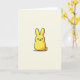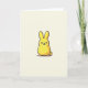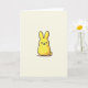This card features a plump, candy-like bunny figure 🐰 in sunny yellow, centered on a muted cream background that keeps the scene calm and uncluttered. Soft, rounded curves and tall upright ears give the character a sweet, friendly presence, like it’s leaning in for a gentle hello. A slightly textured black outline traces the shape, adding a cozy drawn-by-hand look, while a small dark shadow under the base helps it sit on the page. The face is kept simple with two black dot eyes, a tiny black triangular nose, and faint rosy-orange cheek marks that read like a shy blush, hinting at affectionate warmth. Lighting stays even and soft, letting the yellow stand out without glare and making the bunny feel approachable 🐇. There’s no text shown, leaving plenty of open space around the character where a short greeting could sit neatly in a small dark line near the top or bottom. The cream backdrop remains smooth and minimal, with the little shadow tucked just beneath the rounded body.