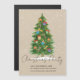 a vibrantly decorated Christmas tree, centrally positioned against a textured, light brown background. At its base, there's a gentle mound of white, resembling freshly fallen snow or a fluffy snowdrift, grounding the tree in a wintry scene.