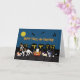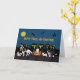 A group of cats and dogs go trick or treating on Halloween Night! The pets in this design include a Akita Inu puppy dressed as a cowboy, a Norwegian Forest Cat with a princess crown, a Siberian Husky pulling a wagon with a pumpkin in it, a Persian cat dressed as an angel, a papillon, a basset hound, a basenji, a Pomeranian dressed as a witch, and a border collie dressed as a police dog. Meanwhile, bats and witches are flying above the neighborhood under a full moon! This design can be customized or personalized by adding your own text or images!