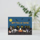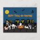 A group of cats and dogs go trick or treating on Halloween Night! The pets in this design include a Akita Inu puppy dressed as a cowboy, a Norwegian Forest Cat with a princess crown, a Siberian Husky pulling a wagon with a pumpkin in it, a Persian cat dressed as an angel, a papillon, a basset hound, a basenji, a Pomeranian dressed as a witch, and a border collie dressed as a police dog. Meanwhile, bats and witches are flying above the neighborhood under a full moon! This design can be customized or personalized by adding your own text or images!