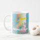 Funky Tropical Vibes Palm Trees Leaves Coffee / Tea Mug / Cup to add to your home / office / business drinkware collection. A cool present / gift idea for all who love custom design items, positive vibes, holidays, nature, pastel colours etc. Pink, yellow, purple, turquoise green / blue.