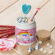 A happy unicorn makes up this fun candy jar. Customizable so you can add your own text and change the background color. Makes a great gift!