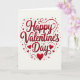 Designed with the words “Happy Valentine’s Day” as the main focus, this card puts the message right in the center. The letters are smooth and flowing, with extra-curved “H” and “D” that make the phrase feel romantic and special ❤️. The text shifts through shades of red, from deep red to a softer red, giving it a gentle sense of depth. The words are arranged so the whole phrase forms a big heart shape, which fits the Valentine’s Day theme so well 💘. Around the main message, smaller red hearts float and scatter in different sizes, like they’re drifting through the air. Tiny red dots sit between the hearts, adding a light, confetti-like touch without taking attention away from the words. Everything sits on an off-white background that keeps the focus on the reds and the loving message. Share it with someone you care about and pass along a little Valentine’s Day love 😘.