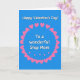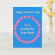 This card shows a deep blue background that sets a calm, loving tone right away. In the center, the words “To a wonderful Step Mom,” appear in rounded white letters with a thin dark outline, making the message easy to read. Around that message is a loose circle made from many pink hearts, each a little different in shape and angle, like they were placed one by one. A few smaller pink hearts are sprinkled inside the circle, adding an extra touch of affection. Near the top, “Happy Valentine’s Day!” is written in the same rounded white lettering, clearly marking the occasion. The contrast of cool blue and warm pink feels romantic and caring without trying too hard 🥰. It’s a meaningful card to give because it speaks directly to a step mom and shows appreciation in a simple, loving way ❤️.