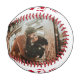Happy Valentine's Day 2 Photo Collage Boyfriend Baseball. Personalized baseball featuring 2 photos, modern and trendy typography saying Happy Valentine's Day, white hearts and names. Add your name and 2 photos and make a lovely gift for your boyfriend who loves sports.