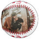 Happy Valentine's Day 2 Photo Collage Boyfriend Softball. Personalized softball featuring 2 photos, modern and trendy typography saying Happy Valentine's Day, white hearts and names. Add your name and 2 photos and make a lovely gift for your boyfriend who loves sports.