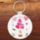 Valentine's Day button keychain with hearts, balloons, chocolates, teddy bear & more.