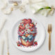 A Valentine's Day Paper Party Plate Designed With A Cupcake Center With Sweetheart Toppings