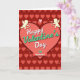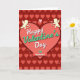 This cheerful Valentine’s Day card features a large coral-red heart at the center that immediately catches the eye. Written across the heart in flowing script are the words “Happy Valentine’s Day,” with “Valentine’s” and the number 14 highlighted in bright green for contrast. Above the heart, two sweet cream-colored cupids appear ready with their bows and arrows. Beneath the message, a folded banner displays “14 FEBRUARY,” marking the special date. The red background is filled with tiny heart shapes and soft white dots that add sparkle and warmth. With layered details and gentle shading, this card feels rich and joyful—perfect for sharing love and friendship on Valentine’s Day. ❤️💌🍫