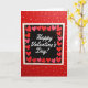 This Valentine's Day card features a deep red background covered with uneven white polka dots that feel cheerful and sweet ❤️. In the middle, there’s a layered square panel that draws your eye right in. The center of that panel is black, making the message stand out clearly. It reads “Happy Valentine’s Day!” in flowing white letters, placed right across the middle. Around the message is a neat border of cutout hearts in alternating red and soft pink, giving it a cozy, caring look. Tiny gold dots sit between the hearts like little sparkles, adding a gentle extra touch. The whole centerpiece is framed by a thin red line and a wider white border, so it feels finished and easy to focus on 🥰. It’s a meaningful card to give because it keeps the message simple and loving, making it easy to share Valentine’s Day sentiments.