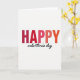 This greeting card centers on the words “HAPPY valentine’s day” on a softly textured, off-white background. “HAPPY” sits at the top in large uppercase letters with a simple sans-serif look, and it fades from deep red on the left through pink and coral to orange on the right. A faint shadow under those letters makes them feel slightly raised from the page. Below it, “valentine’s day” appears in smaller black cursive lettering, placed neatly under the big word. The mix of bright color above and calm black writing below feels like excitement paired with steady affection. It’s a meaningful card to give because it says what you want to say clearly, without needing extra pictures, and it still feels warm and thoughtful 🥰. It works well for a partner or a close friend, especially if you want something simple that still feels full of care ❤️.