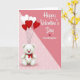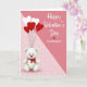 This greeting card features an ivory teddy bear sitting in the lower half of the front, looking calm and sweet as it holds five heart-shaped balloons overhead. Two of the balloons are white and three are deep red, with thin strings gathered together above the bear’s head. The bear has a shiny cherry-red nose and a neat red bow at its neck, which ties in nicely with the red balloons. Behind it, the background is split by a diagonal line, with a darker rose-pink area in the upper right and a lighter blush-pink area in the lower left with faint heart shapes. In the upper right corner, the words “Happy Valentine’s Day Granddaughter” appear in a flowing, handwriting-like style, set in a dark color that stands out against the pink. The whole scene feels gentle and caring, making it an easy way to show love and closeness 🥰. It’s a meaningful card to give when you want your granddaughter to feel remembered and truly cared for on Valentine’s Day ❤️, and it’s perfect for sharing Valentine’s Day.