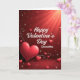 This greeting card shows a rich red background that fades from deep burgundy at the bottom to brighter scarlet near the top, with soft light rays spreading upward. In the lower-left corner, there’s a large shiny heart with gentle highlights that make it look rounded and glossy. Smaller glossy hearts float around the card, with tiny shadows that help them stand out from the background. Little star-like sparkles and thin white curling lines weave between the hearts, adding a sweet, dreamy feel. The text reads “Happy Valentine’s Day Grandma” and it sits near the top center in smooth, flowing white lettering. It feels meaningful to give because it puts family love front and center, and the warm reds and hearts make the message feel close and caring 🥰. It’s a simple way to remind Grandma she’s loved and appreciated on Valentine’s Day ❤️, and it’s always nice to share Valentine’s Day.