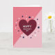 This card shows a large burgundy heart right in the center with the words “HAPPY VALENTINE’S DAY” in white, simple sans-serif letters. The text sits neatly inside the heart and is easy to read at a glance. Around the heart, there are scattered stars in navy blue and white, in a mix of small and medium sizes. The background is split by a diagonal line, with a deeper rose pink in the upper left and a lighter blush pink in the lower right. The heart and stars stand out clearly against the two-tone pink setting, giving the card a cheerful, romantic look. It feels sweet and upbeat without being too busy, making it great for a partner or a close friend 💘❤️. Hope it helps you share a little extra love on Valentine’s Day.