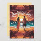 A romantic scene unfolds as a couple stands hand in hand on a sunlit beach. The camera gently sweeps in from a wide shot, capturing the vibrant sunset casting warm hues across the sky and reflecting on the waves. As they gaze at the horizon, the camera slowly pans around them, showcasing the gentle lapping of the waves and the soft rustle of palm leaves. The atmosphere is filled with love and tranquility, enhanced by a pastel color palette. The scene transitions smoothly, evoking a sense of warmth and connection, perfect for a Valentine's Day celebration.