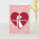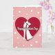 This greeting card features a large red heart in the middle, set against a soft pink background. Inside the heart, a white couple leans in close, their faces turned toward each other as if they’re about to kiss 💘. Their simple outlines feel calm and sweet, keeping the focus on closeness and care. Around the heart, small white hearts float across the pink space, giving the scene a light, loving look ❤️. Near the bottom, the words “Happy Valentine’s Day” appear in flowing white letters with a thin red outline. A few tiny sparkle dots sit near the couple, adding a gentle shine without taking over the design. It’s an easy, romantic card that’s great for a partner or someone you care about 😘.