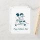 Happy Valentine's Day Lovely Postcard with an original drawing of a Love Couple on Vespa, he is the driver and she is sitting behind him, holding him around his waist. Instead of gas coming out of the motorcycle, there are little red love hearts, the same color as the cheeks of both riders. Below is customizable text saying: "Happy Valentine's day!"