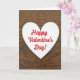 This unique greeting card features a simple white heart cutout placed right in the center. It sits on a warm wooden background where the grain lines show clearly and add a cozy, homey feel. Inside the heart, the message reads “Happy Valentine’s Day!” in red cursive script that looks like neat handwriting. The text is centered within the heart and stands out strongly against the white paper. The overall look is calm and sweet, with soft lighting and no harsh shadows. With the heart shape and warm wood setting, it feels like a quiet note of love or friendship meant for someone special ❤️
