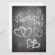 Valentines in chalkboard style with heart and handwritten chalky greetings on the front of the card. The remaining areas are freely available.