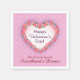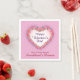 These Valentine's Day paper napkins feature a heart with hand drawn pink and purple flowers as the border. The background is light pink with a small heart pattern overlay. The floral heart in the center features text that reads: Happy Valentine's Day! Customizable text below the heart allows you to customize with your name and the title of your event.