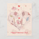 Happy Valentine's Day Pink Whimsical Flowers Birds Holiday Postcard