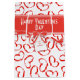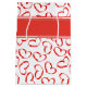 The text across the top says, "Happy Valentine's Day." Personalize it with your own words, name, initials, or monogram using the template supplied. There is also some text on the printed gift tag with a separate template, where you can change it to your own words. The background is a hand drawing of the outline of a heart repeated for a random pattern. There is a large red bow in the center front. It's a unique gift for your Valentine's day holiday. You could change the text for a "Happy Anniversary," "Happy Birthday," or "Happy Every Day"!