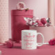Sweet Valentine's Mug features three cute watercolor Hearts in pink and rose, with a lovely pink typography script "Happy Valentine's Day" and a name you can change or delete from the personalized menu. It is a beautiful moment to focus on the good and spread joy.