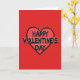 This Valentine's Day card shows a bright red background with a large heart centered on the front in a slightly darker red. Inside the heart, the words “HAPPY VALENTINE’S DAY” sit right in the middle. The letters are black and look a bit raised, with a light shine on top and a small shadow underneath that helps them stand out. The heart shape feels steady and simple, like a clear sign of care and closeness. With all the red tones, the card instantly brings to mind love, warmth, and being brave enough to say what you feel ❤️. It’s a meaningful choice for a partner, a close friend, or anyone you want to remind that they matter 🥰. Hope it helps you share your Valentine’s Day feelings with someone you care about.