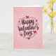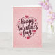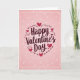 This card features the words “Happy Valentine’s Day” in dark ruby, flowing handwritten-style letters placed right in the center. Around the message is a wreath-like ring of deep crimson hearts, with curling vine shapes and small arrow details woven between them. The hearts feel full and sweet, and the looping lines make the design feel like it’s gently wrapping the message in care. Behind everything is a soft pink background that shifts from a slightly deeper rose near the top to a lighter blush near the bottom. Faint, see-through heart shapes are scattered across the background, adding a quiet reminder of love without taking over. A thin, pale double-line border frames the whole card and keeps it feeling tidy and finished. It’s a simple way to say you care, whether it’s for a partner, a close friend, or someone you’re grateful to have in your life 🥰❤️.