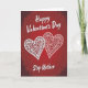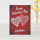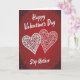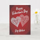 This Valentine's Day card shows a deep red background that fades into a darker burgundy around the edges, with a soft, painted look. Near the top, the words “Happy Valentine’s Day” appear in white, flowing cursive-style letters that stand out clearly. In the middle sit two large hearts, one bright white on the left and one soft pink on the right, placed close together like a pair. Each heart is filled with fine, curling lace-like swirls that add detail and make them feel extra caring. Around the outer edges, tiny star-like specks and light, smoky textures give the scene a gentle sparkle without distracting from the hearts. Along the bottom, “Step Mother” is written in matching white cursive-style letters, making the message feel direct and personal. It’s a meaningful card to give because it pairs a simple greeting with a clear dedication and a warm, affectionate look 🥰❤️.