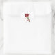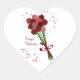 heart-shaped sticker for Valentine's Day. Bouquet of stylized roses held by a red knot, halo of small pink and white hearts.