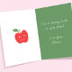 Tell a teacher how truly appreciated they are with this cute Valentine's Day card. A sweet and simple design with lots of hearts and apples! This personalized card features stylish script lettering with the words "Happy Valentine's Day to my wonderful teacher", and there's the option to replace the word "wonderful" with something different. You can also add the teacher's name at the bottom. Inside the card is a smiling apple illustration and your own personal message. On the back, the name of the school or class can be added and the Valentine's year.