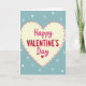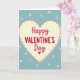 This card features a large, hand-drawn heart in creamy yellow taking up most of the front. Around the heart is a border of fuchsia dots that gives it a sweet, homemade look. Inside the heart, the message reads “Happy VALENTINE’S Day,” with “Happy” and “Day” in a smooth, flowing black letter style and “VALENTINE’S” in thicker red letters. A tiny red heart takes the place of the apostrophe in “VALENTINE’S,” adding a small but meaningful touch ❤️. The background is light teal, sprinkled with small white hearts and little starburst shapes that feel like a gentle shower of love. The slightly uneven heart shape and soft colors make it feel warm and real, like someone took time to say what matters. It’s a lovely choice for a partner or a close friend when you want to keep things simple and sincere 🥰, and it’s perfect for sharing Valentine’s Day sentiments.