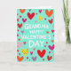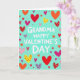 This card has a teal background filled with scattered hearts that make the whole scene feel happy and loving ❤️. The hearts come in fuchsia, orange, red, pink, purple, and even a bright yellow one, and they’re spread all around like confetti. Some hearts have little white polka dots, and the yellow heart has red spots, which adds a cute, cozy detail. In the center, the message reads “GRANDMA HAPPY VALENTINE’S DAY” in big, white, all-capital letters that are easy to read. The letters look simple and straightforward, and they sit right in the middle so your grandma sees the message first. With all the hearts surrounding the words, it feels like you’re giving her a big hug on paper 🥰. It’s a meaningful choice when you want to show love and appreciation in a clear, sweet way. Hope it helps you share Valentine’s Day sentiments with someone you care about.