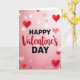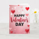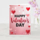 This Valentine's Day card features the words “Happy Valentine’s Day” centered on a soft pink background. “HAPPY” and “DAY” are written in simple black letters, while “Valentine’s” sits between them in a flowing red style that looks like it was brushed on. Behind the text, the color fades from pale blush at the top to a deeper rose near the bottom. Hearts float across the card in different sizes, from sharp dark red hearts to lighter pink ones that look slightly out of focus. Small white light dots are scattered around like gentle sparkles, giving the whole scene a cozy, romantic feel 🥰. It’s a meaningful card to give because it feels warm and straightforward, like saying you care without needing a lot of extra words ❤️.
