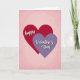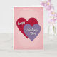 This Valentine's Day card features two overlapping hearts centered on a soft pink background with a light speckled texture. The larger heart is deep red and sits behind the other, giving the design a warm, romantic focus ❤️. Across the red heart, the word “happy” appears in smooth white cursive-style lettering near the middle, with a faint shadow that helps it stand out. In front, a lavender heart overlaps the red one and carries the words “Valentine’s Day” in the same white cursive-style lettering. The hearts look slightly textured, like they were gently painted, and the layers make the message feel connected and sweet 💘. The simple red, lavender, and pink colors keep the scene calm and loving without adding extra clutter. It’s an easy, heartfelt way to share your feelings, so pass it along and spread a little love this Valentine’s Day 😘.
