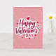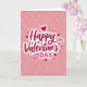 This greeting card features the words “Happy Valentine’s Day” centered in the middle, written in flowing red letters that shift from bright red to a deeper red. A thin white outline around the lettering helps it stand out clearly. The background is a soft blush pink with faint, blurry heart shapes floating behind the message. At the very top and bottom, slim red lines frame the design and give it a simple finish. Around the main text, you’ll see several small hearts—some filled in red and others shown as red outlines. Near the word “Valentine’s,” there’s a larger outlined heart that curves gently, like it’s hugging the message. It feels meaningful to give because it keeps the focus on love and kindness without being too much, making it great for a partner or a close friend 🥰❤️.