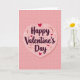 This greeting card features a large pink heart in the center, with soft shading that makes it look gently layered. Inside the heart, the text reads “Happy Valentine’s Day” in a flowing, cursive-style lettering, printed in deep burgundy and placed right in the middle. The background is a muted pastel pink, filled with faint, misty heart shapes that fade softly into the space behind the main heart. Scattered around the center are smaller red hearts and a few tiny starburst shapes, like little sparks of celebration. Everything feels calm and sweet, like a quiet moment where you’re simply saying “I care about you.” It’s a meaningful card to give because the simple heart-and-message focus makes the words feel direct and sincere ❤️. It’s an easy way to share Valentine’s Day sentiments with someone you love or appreciate 🥰.