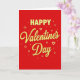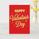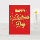 This greeting card features a deep red background with “Happy Valentine’s Day” in the center in golden-yellow letters. The word “Happy” is in simple sans-serif letters, while “Valentine’s Day” is written in a flowing cursive style that looks smooth and romantic 💘. The gold text has a lightly worn texture and a soft shadow that helps it stand out from the red. Around the message, small hearts outlined in white float across the card, adding a sweet, loving feel ❤️. You’ll also notice little starburst shapes and tiny dots scattered around the hearts like confetti. The overall look feels warm, cheerful, and perfect for showing affection to a partner or a close friend 😘. It’s a lovely way to share Valentine’s Day sentiments with someone you care about.