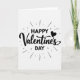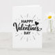 This greeting card features the words “Happy Valentine’s Day” in black on a white background, with the phrase centered on the front. “HAPPY” sits at the top and “DAY” sits at the bottom in all-caps, simple sans-serif lettering that feels clear and upbeat. “Valentine’s” is written across the middle in a flowing cursive style, giving the main word a softer, romantic feel 💘. A small solid black heart replaces the dot over the “i” in “Valentine’s,” adding a sweet little detail ❤️. Around the text, short dashed lines spread outward like rays, making the message feel lively and celebratory. The black-and-white color scheme keeps the focus on the words and the heart, with nothing else in the background. It’s an easy, loving way to share Valentine’s Day sentiments with someone special 😘.