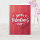 This Valentine's Day card features a big red heart in the middle, set against vertical stripes in deep red shades. Inside the heart, the text reads “Happy Valentine’s Day,” with “Happy” and “DAY” in simple white letters and “Valentine’s” in a flowing white letter style across the center. Around the heart, you’ll see small light pink hearts outlined in white, plus scattered stars in soft pink and warm gold. The heart looks slightly raised with gentle shading, which makes the design feel layered rather than flat. The overall look is sweet and cheerful, like a little burst of love on a red background. It feels meaningful to give because it says exactly what you want to say, while the hearts and stars add a caring, affectionate touch 🥰❤️. Share it to pass along a little extra love